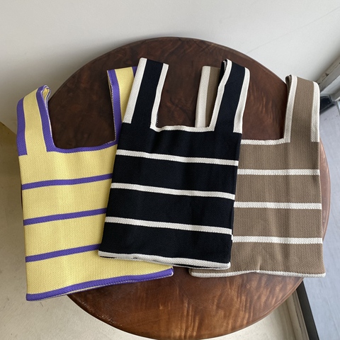 Tùy Chỉnh Mini Crochet Cho Phụ Nữ Giản Dị Xách Tay Tote Hai Dây Đeo Dễ Thương Thẩm Mỹ Cổ Tay Hôn Sọc Cho Mua Sắm